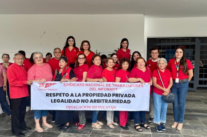 Trabajadores del Sindicato del Infonavit delegación Yucatán realizaron un plantón pacífico en las oficinas...